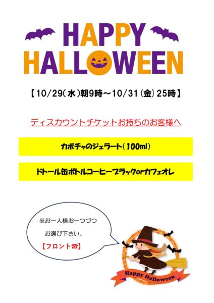10月29日(水)朝9時~10月31日(金)25時迄限定のウェルカムサービスとして、ハロウィン気分を楽しめるスイーツとドリンクをご用意しております👻🧡